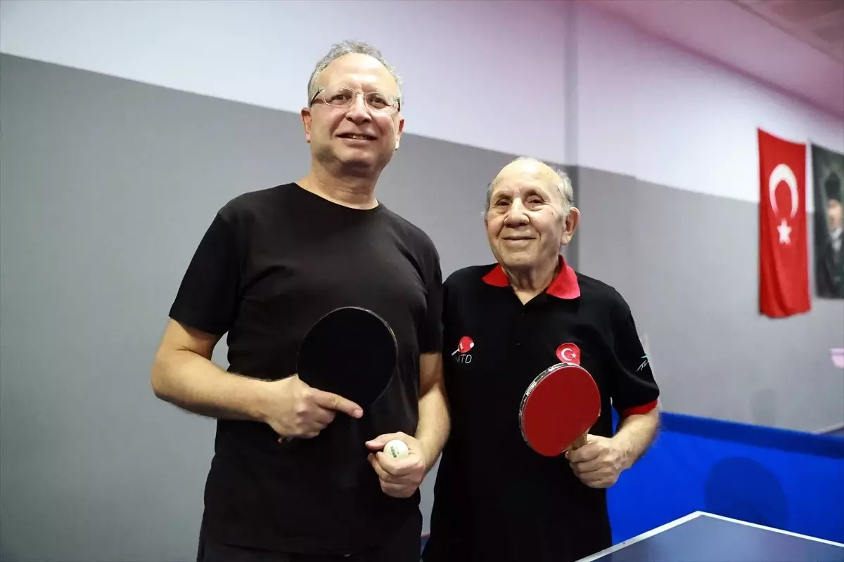 Mersin’de veteran masa tenisi sporcuları 87 yaşındaki Ahmet ve 54 yaşındaki oğlu Öner Özer, katılacakları turnuvalar öncesi birlikte antrenman yapıyor.…